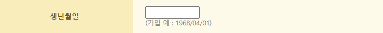 기입 예처럼 0000/00/00 형태로 입력하시면 됩니다.