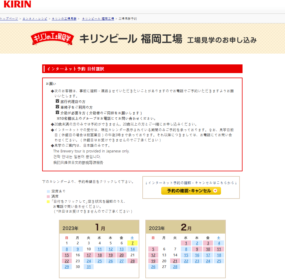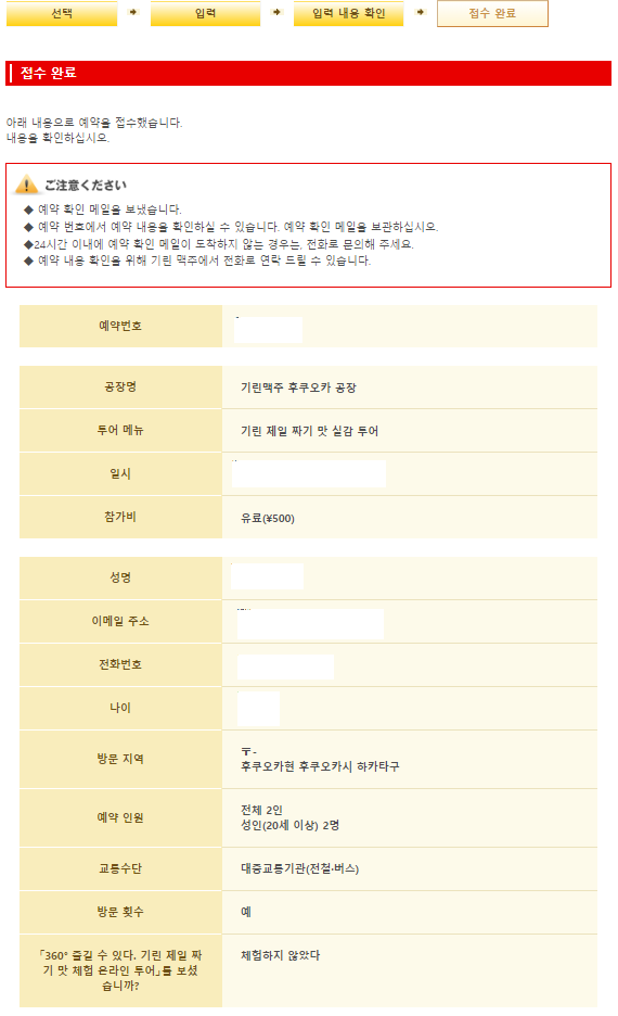 투어 예약은 간단하지만 하루에 투어 가능한 시간 대가 2가지뿐이고 참여할 수 있는 정원도 각각 12명뿐이라 후쿠오카 기린 맥주 공장에 견학을 하실 분들이라면 미리 예약을 하시는 것을 추천드립니다.