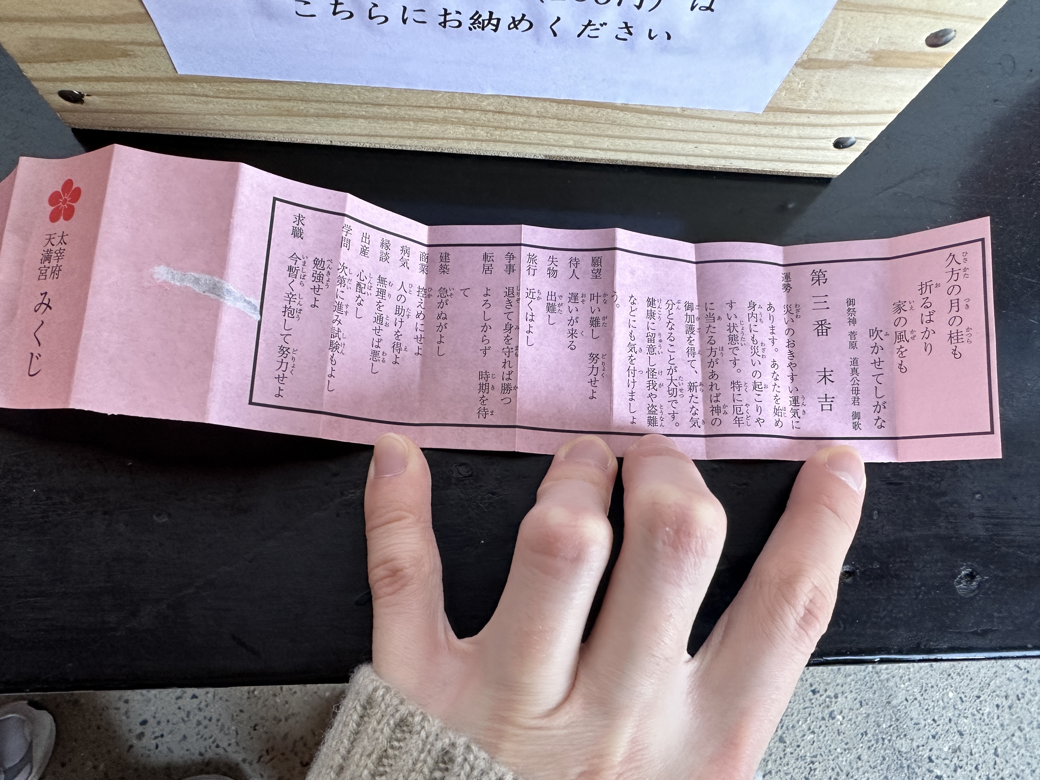 [ 천만궁 ] 다자이후 텐만구 오미쿠지 ( 운세 뽑기 ) 제3번 해석