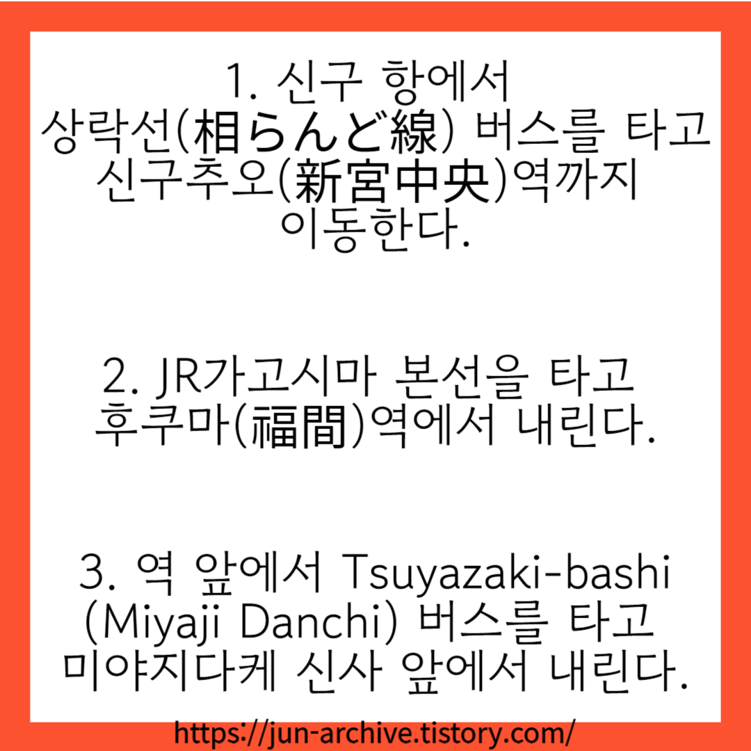 아이노시마에서 미야지다케 신사까지 가는 방법은 상단의 사진과 같습니다!