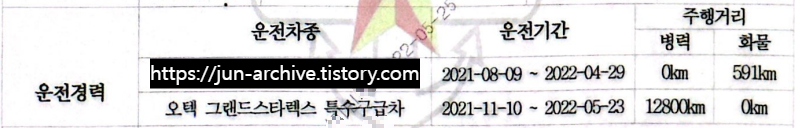 운전기간이 2021년 11월부터 2022년 5월까지로 나오는데 실제로는 2021년 8월부터 2022년 6월까지 운전했습니다.