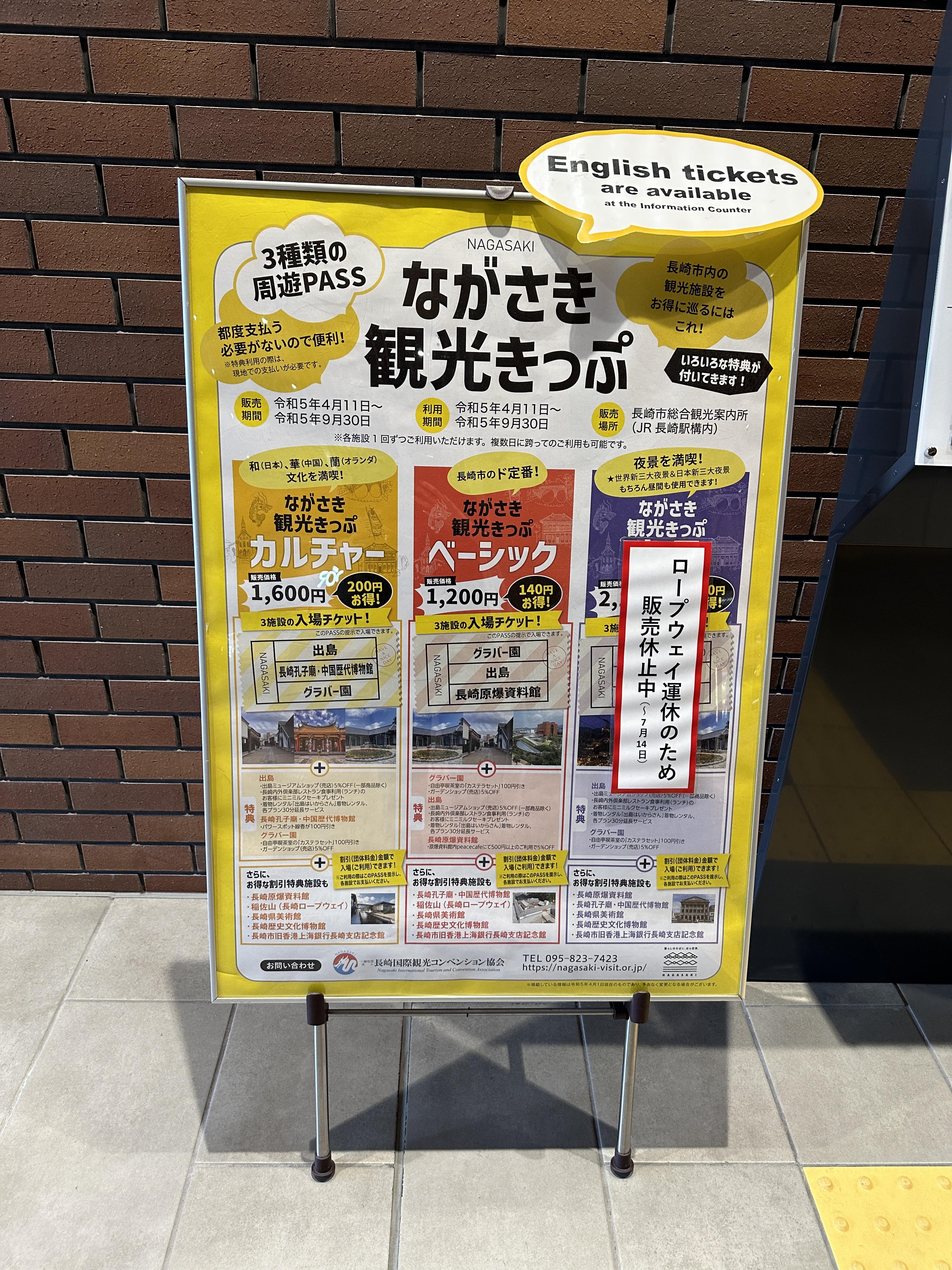 나가사키시 종합관광안내소에서는 나가사키의 유명 관광지의 입장권을 세트 가격으로 구매할 수 있는 일명 '나가사키 관광 티켓'을 판매하고 있다.