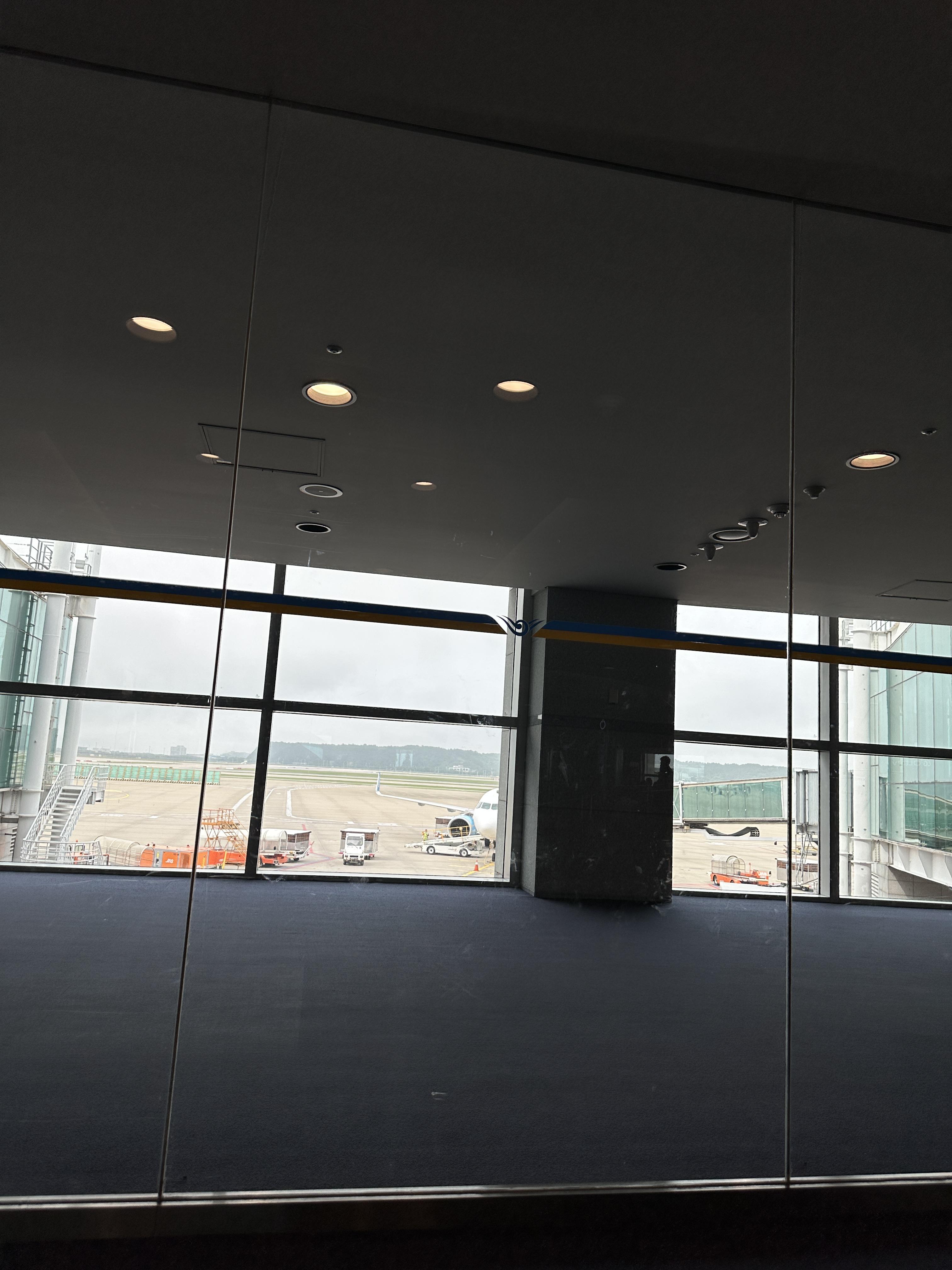 여행의 시작을 알리는 인천공항에서 비행기를 기다리며 찍은 사진이다.