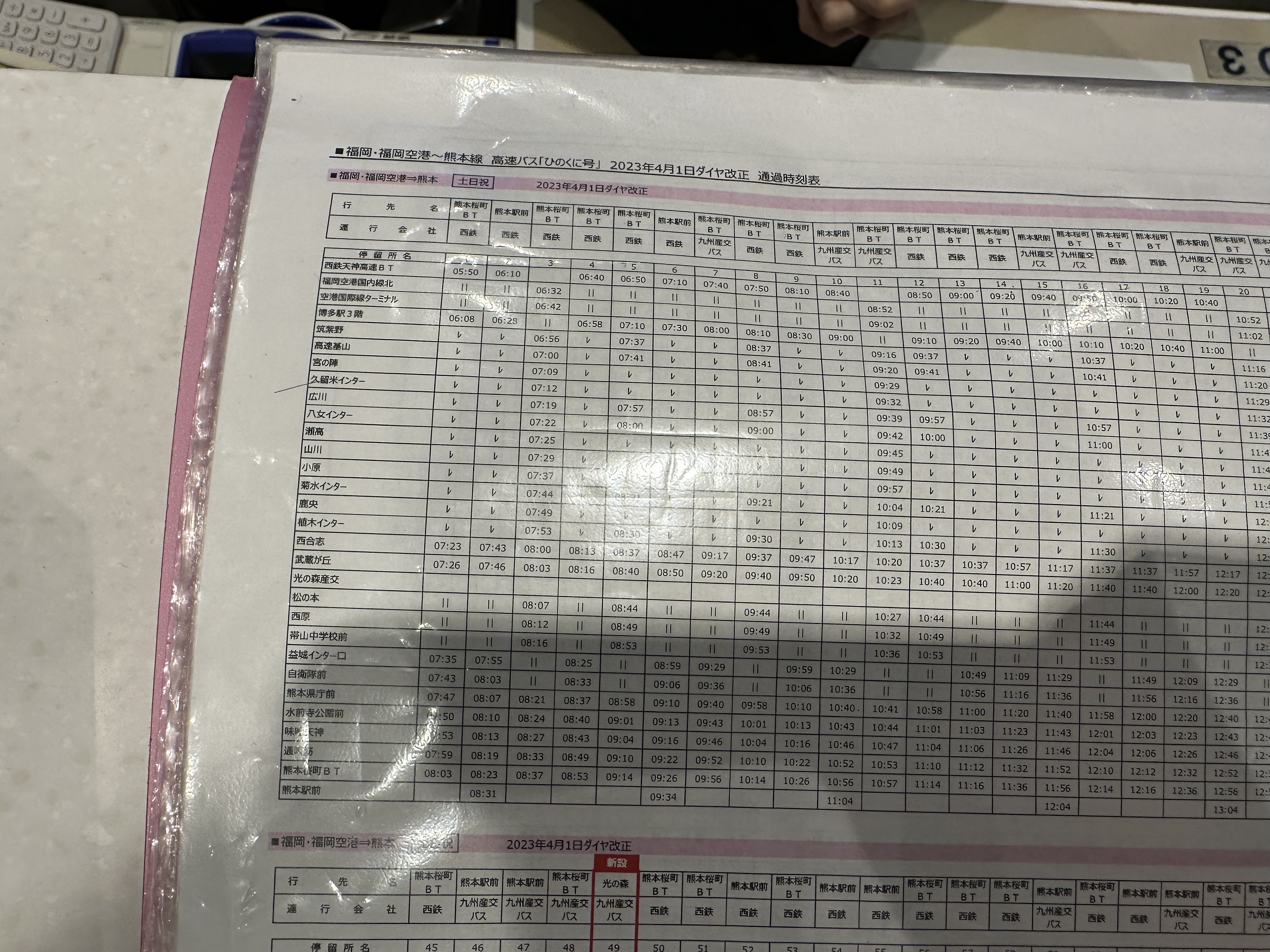 나가사키에 갔을 때와는 달리 구마모토로 가는 버스는 예약할 수 없었기에 후쿠오카에서 구마모토로 가는 버스 시간표를 사진 찍어놓았다.