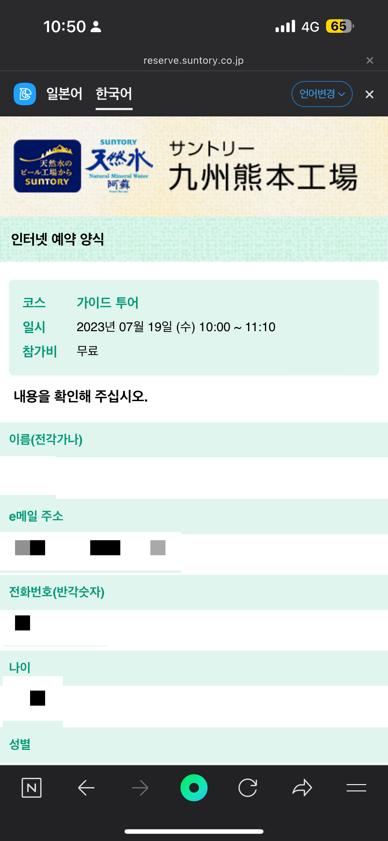나가사키에서 후쿠오카로 가는 버스에서는 미리 구마모토 산토리 맥주공장 가이드 투어를 예약했다.