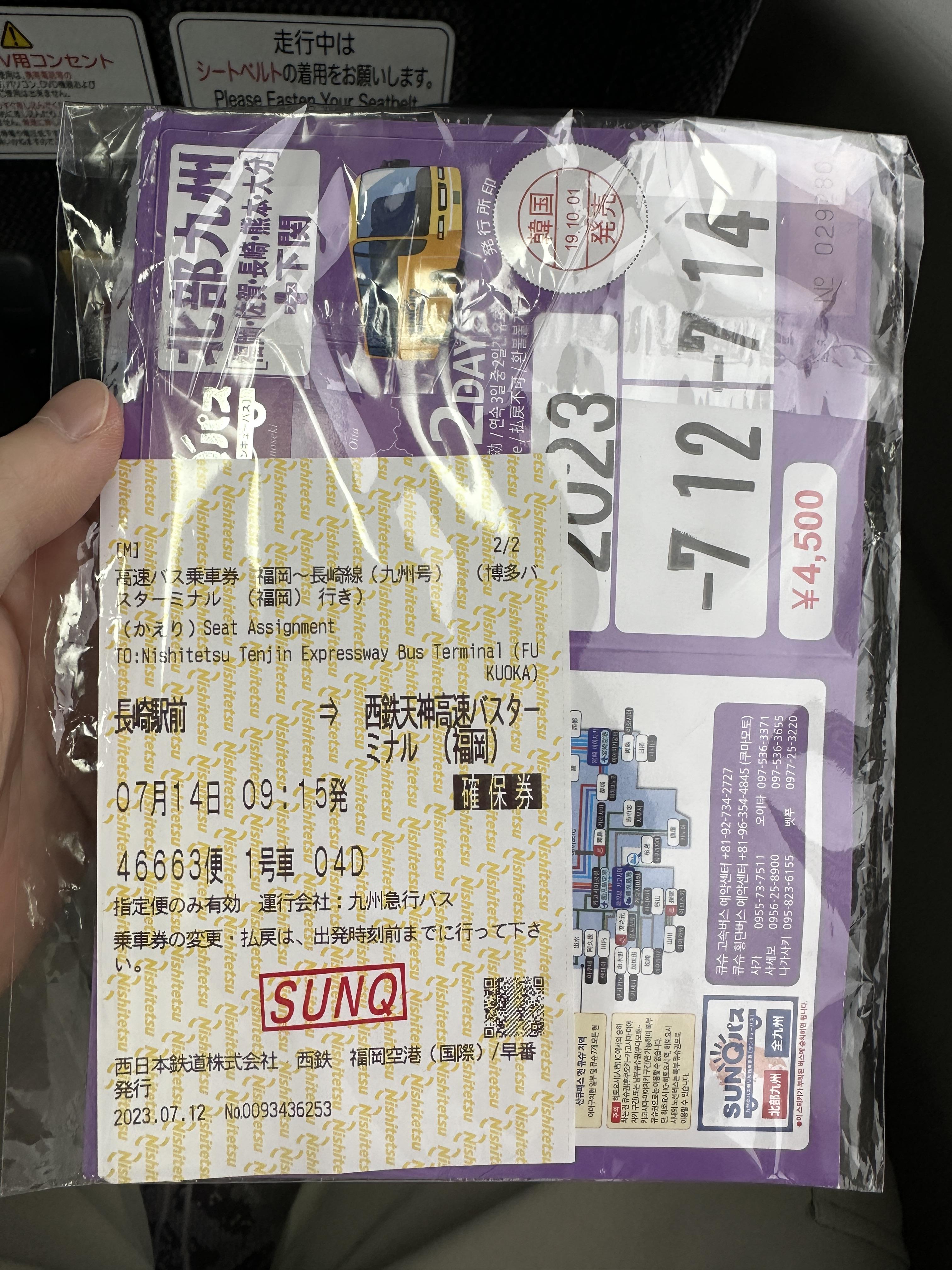 오전에 퍼스트 캐빈 나가사키를 체크아웃하고 나가사키에서 후쿠오카로 가는 버스를 탔다.이 날은 산큐패스로 나가사키와 후쿠오카로 가는 교통비 뿐만 아니라 후쿠오카에서의 교통비도 절약할 수 있었다.