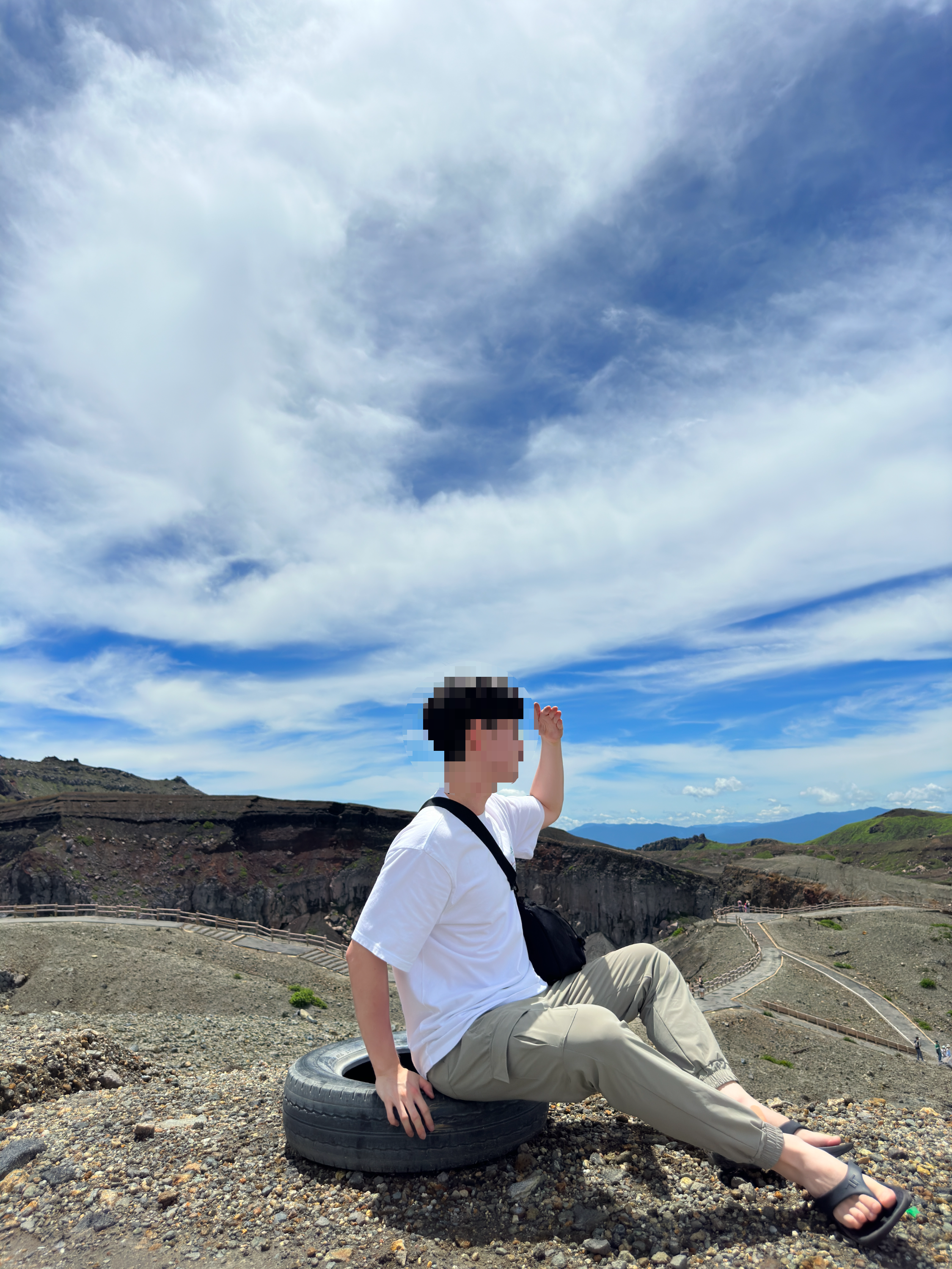 이 날에는 아소산과 쿠사센리에 가기 때문에 편한 복장을 입었다.