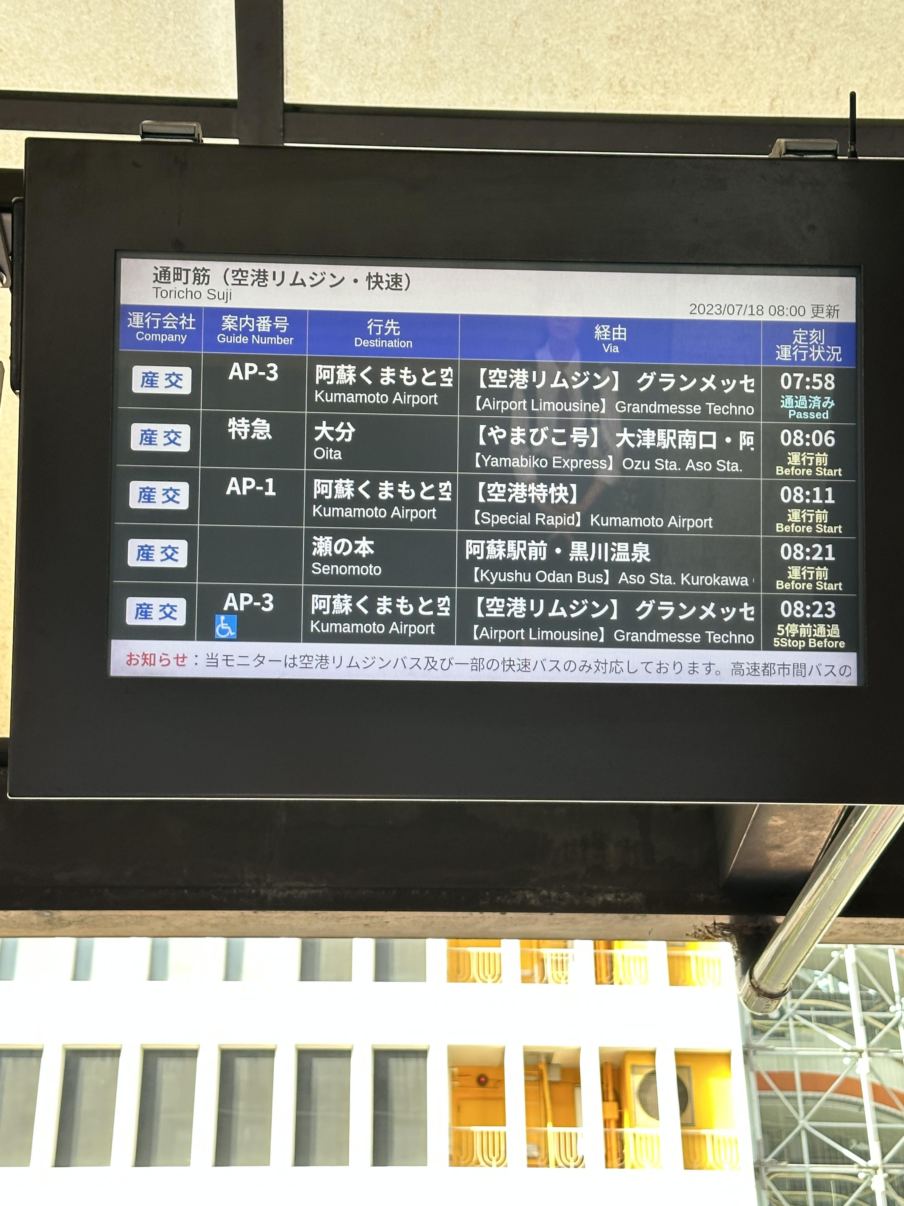 그렇기 위해서는 구마모토 사쿠라마치 버스터미널에서 출발하는 버스를 타야 한다.