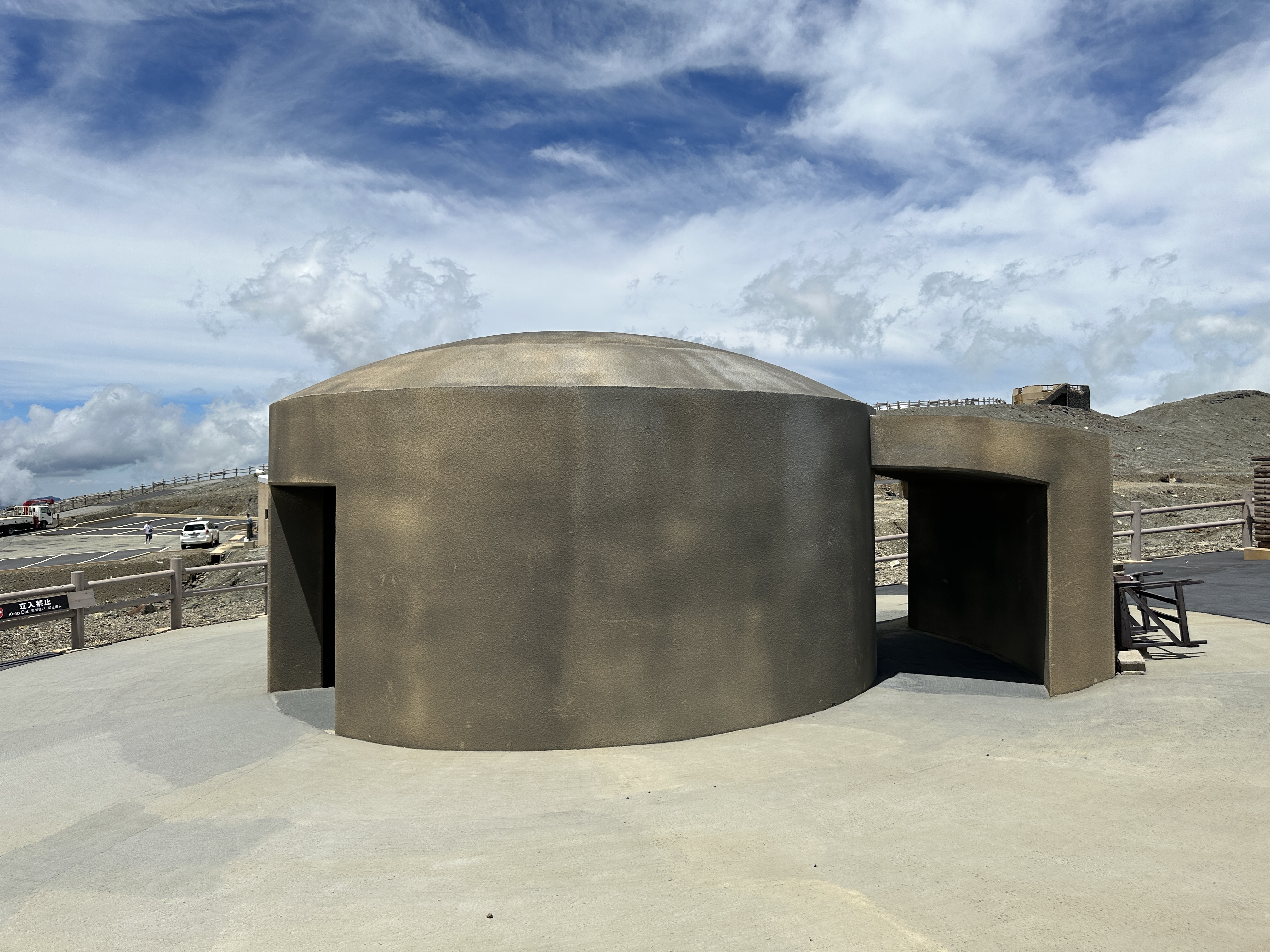 화구 입구에는 이런 경고 안내문과 긴급 대피소가 있었다.