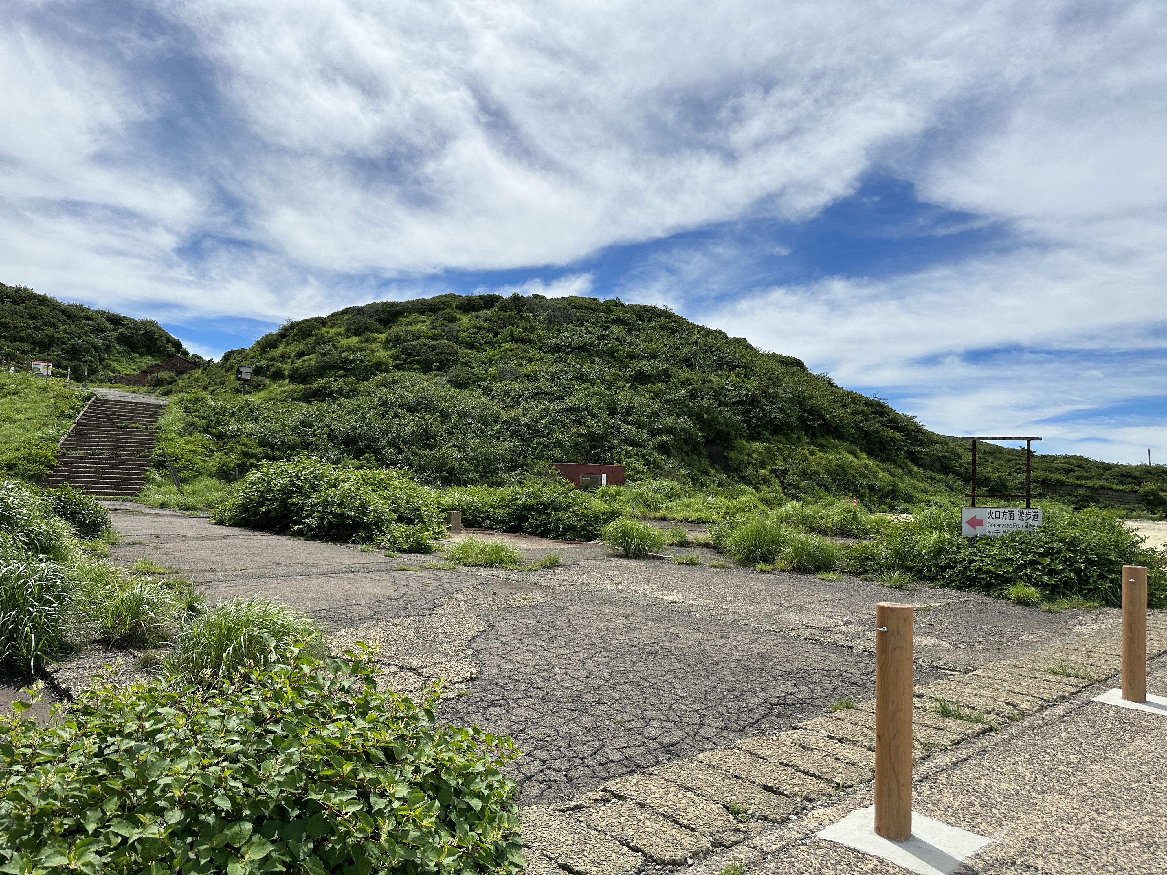 저 멀리 보이는 길을 쭉 따라 올라가면 분화구가 있다.