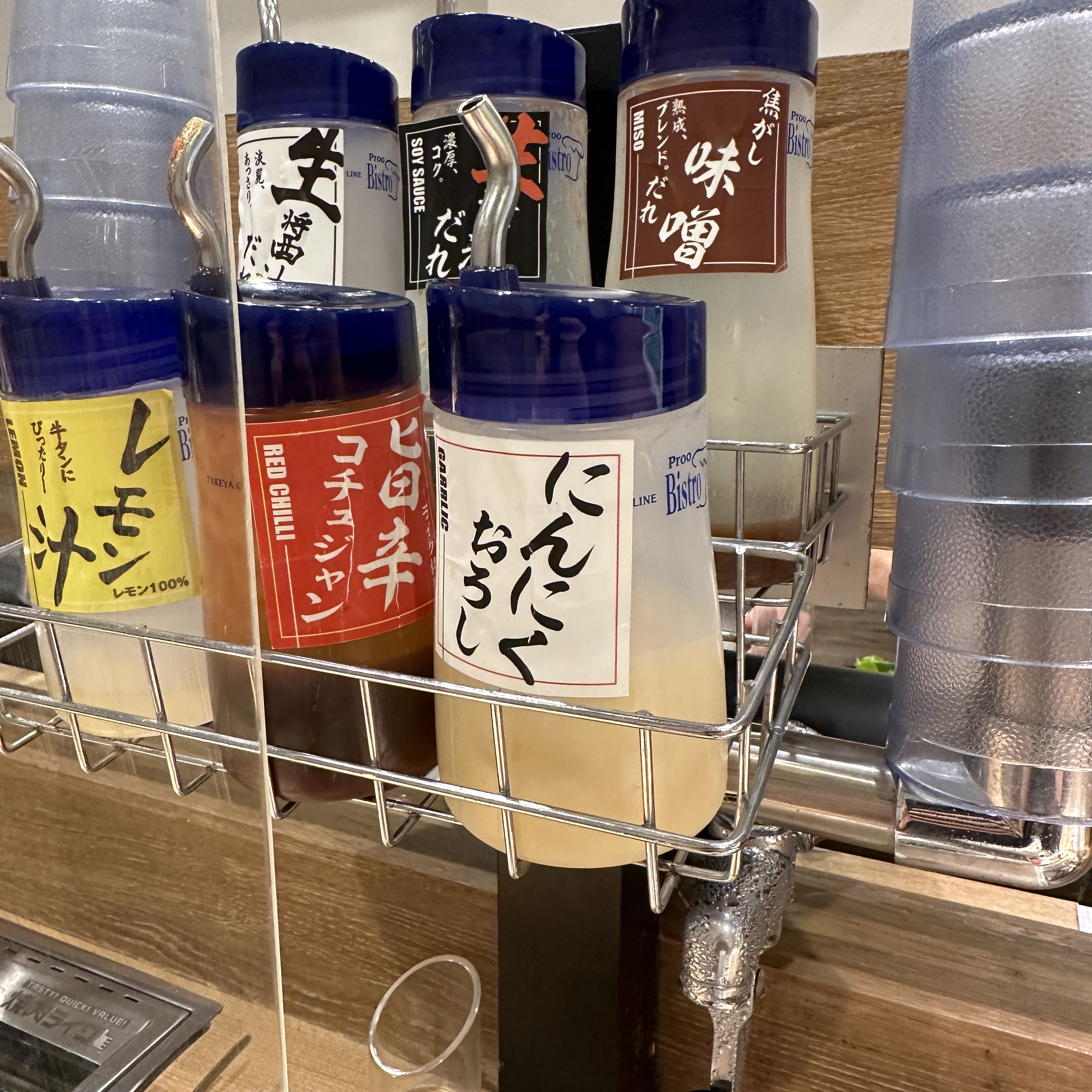 좌석 옆쪽에는 다양한 소스가 있었다.