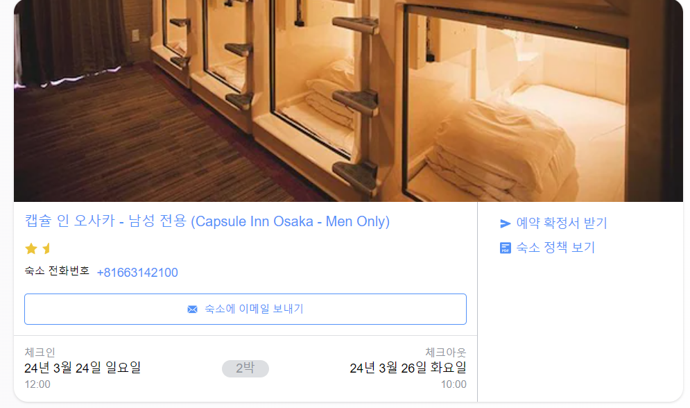 캡슐 인 오사카라는 캡슐호텔인데 3박에 5만원도 안 되는 가격에 예약했다.