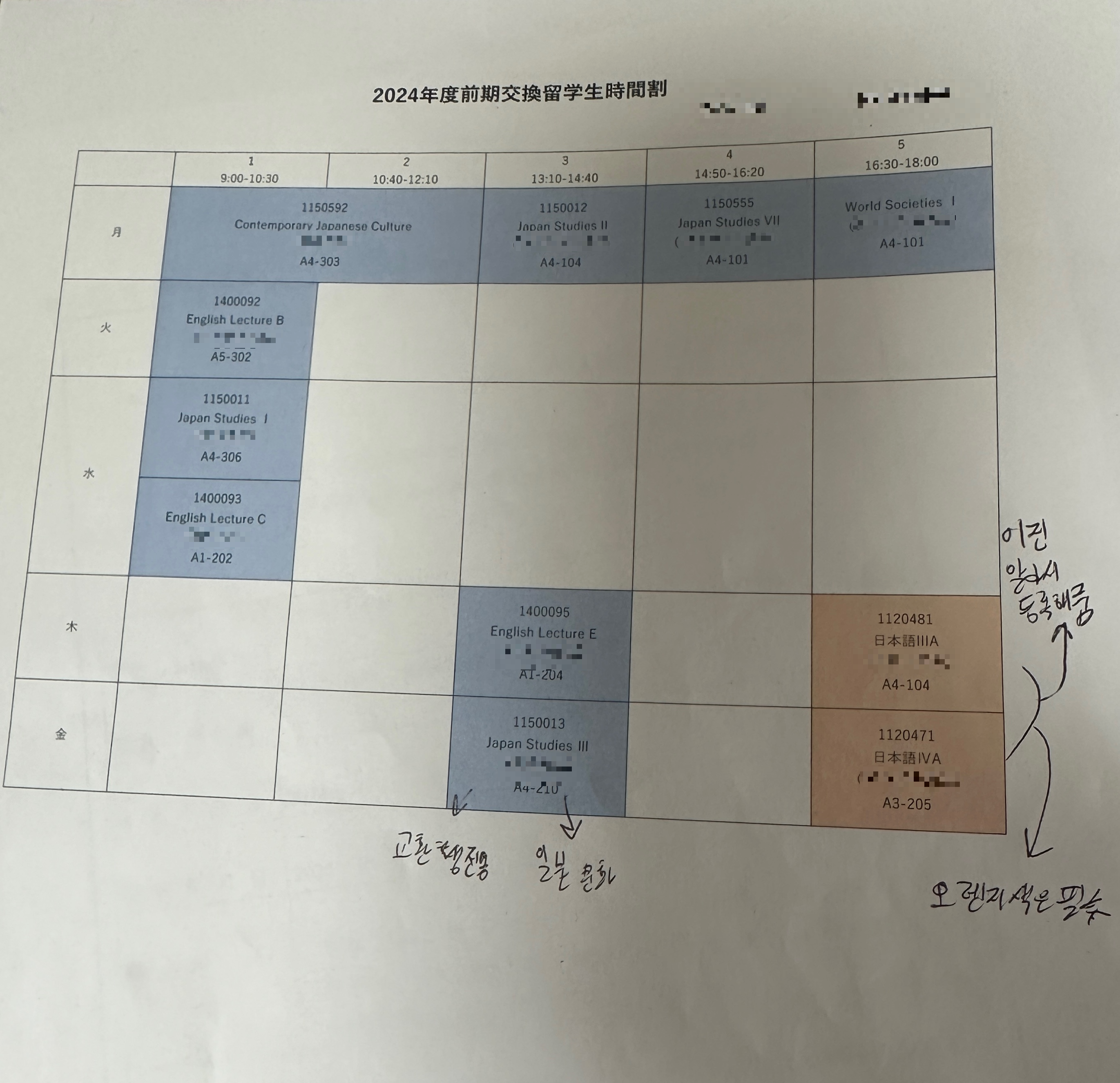 교실에 가서는 튜터를 소개받고 수강신청뿐만 아니라 일본에서의 생활에 대한 전반적인 설명을 들었다.