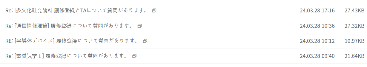 그때쯤 학과 조교님께 전화로도, 이메일로도 교환학생 전공 학점에 대해 이것저것 여쭤봤는데 그때 보낸 메일을 튜터에게 보여주면서 내가 시가현립대학에서 수강하고 싶은 전자공학 수업들이라고 말했다.