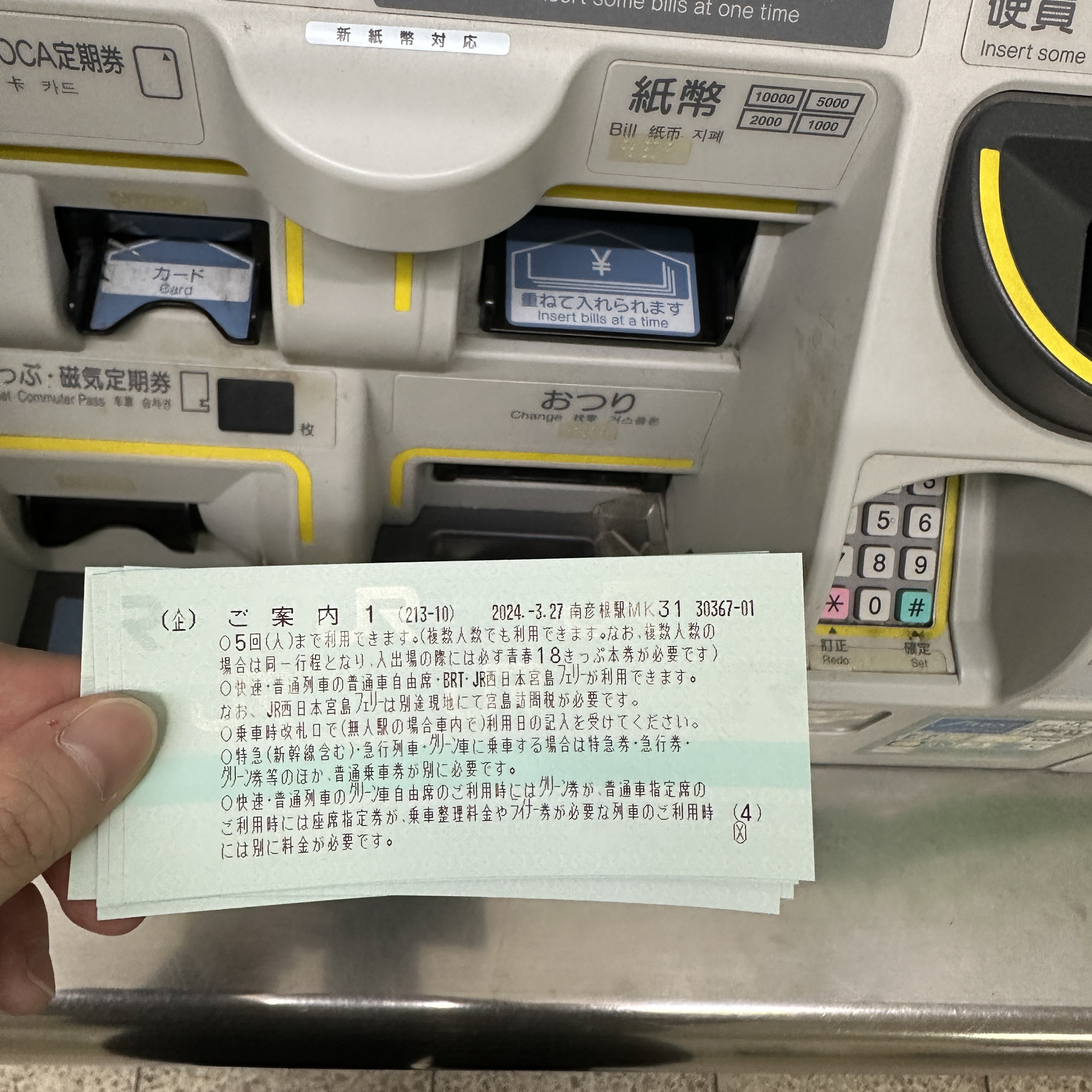 일본의 비싼 교통비를 절약하기 위해 미나미히코네역으로 가서 청춘 18 티켓을 구입했다.