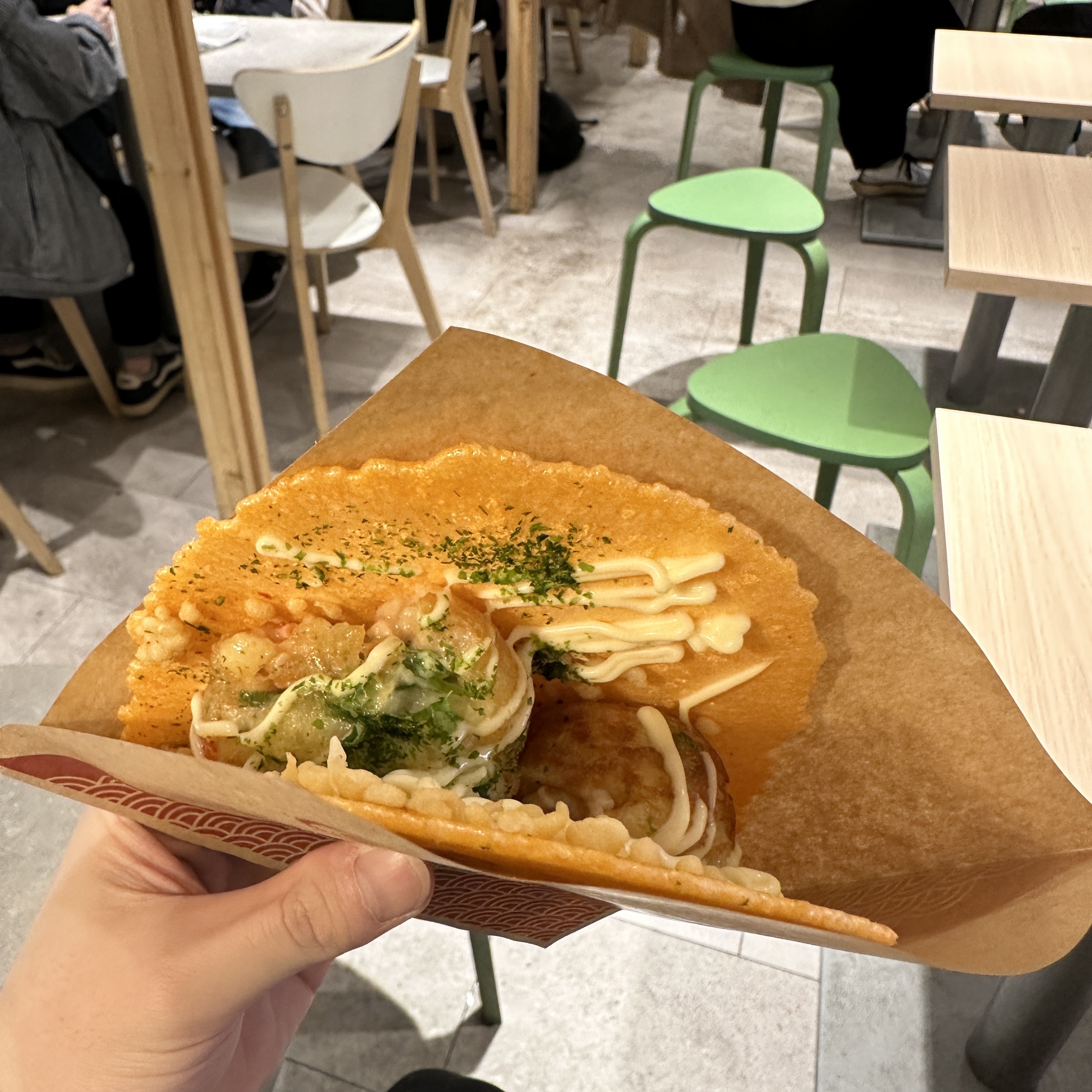 그다음에 나카미세도리로 돌아와서 몇 가지의 음식을 맛보았다.