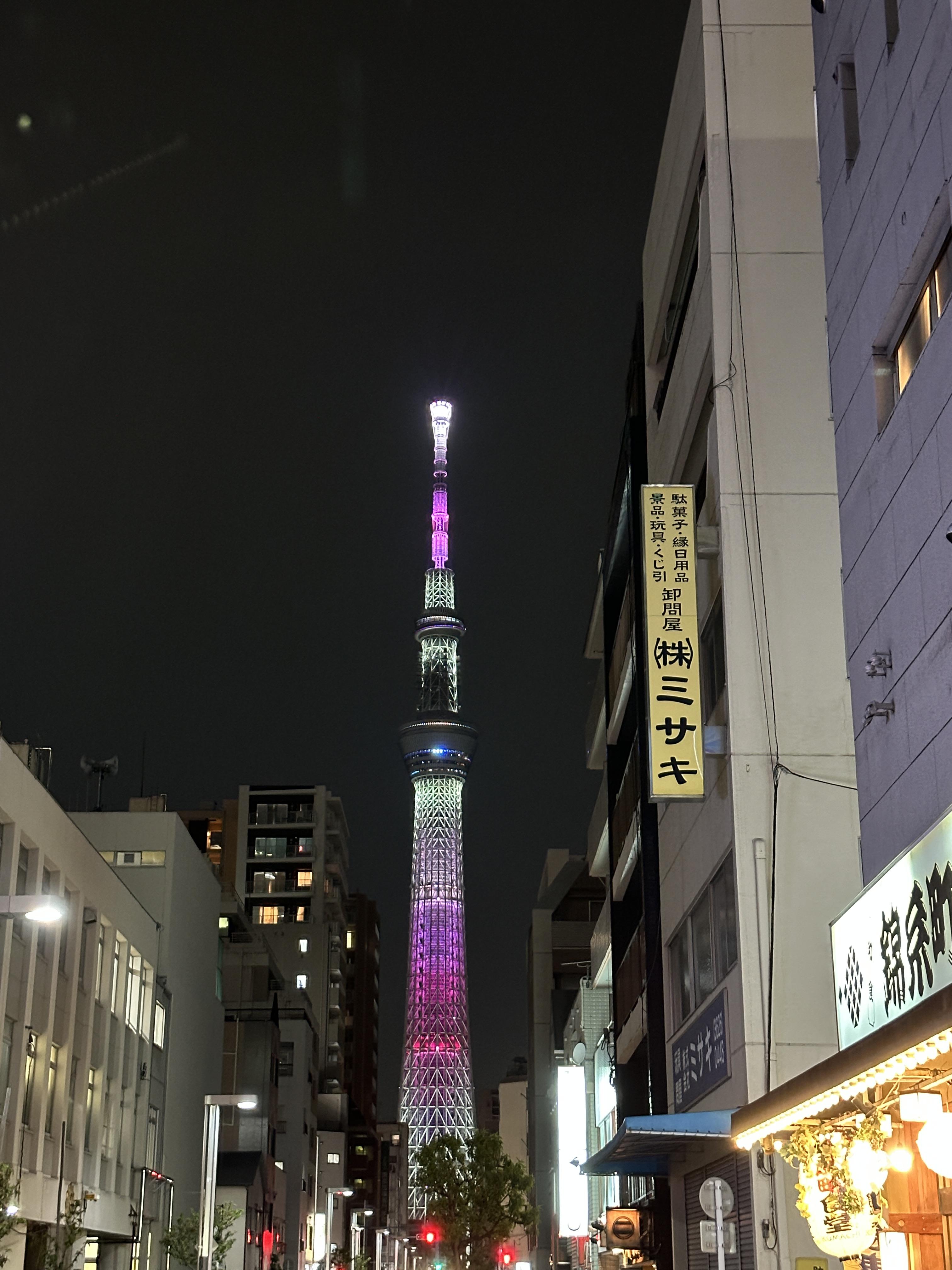 숙소가 있는 긴시초역으로 돌아왔는데 멀리 보이는 스카이트리가 정말 장관이었다.