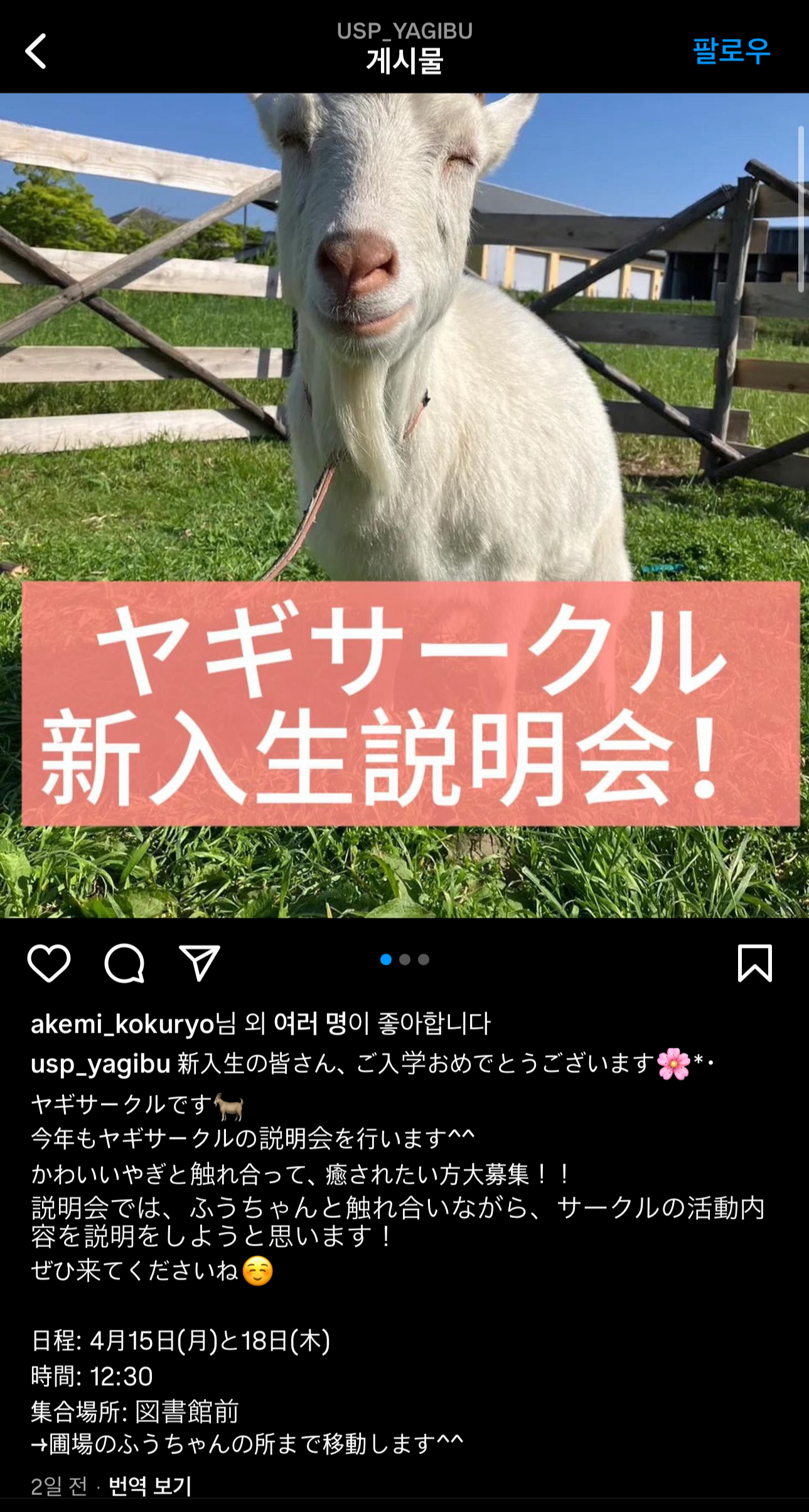 점심시간에 직접 염소를 볼 수 있는 체험회가 열렸어서 친구들과 한 번 가봤다.