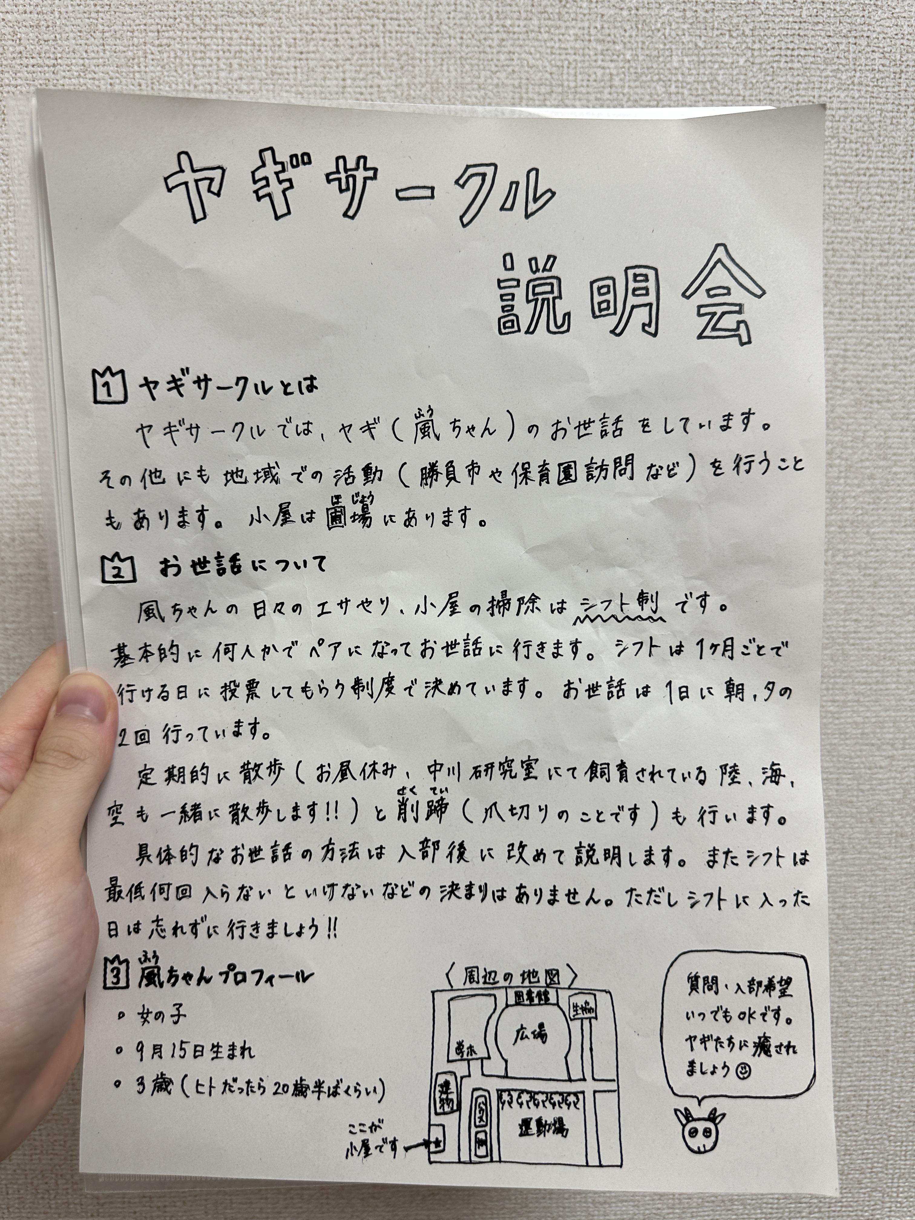이건 체험회 때 염소 서클의 사람들로부터 받은 종이다~