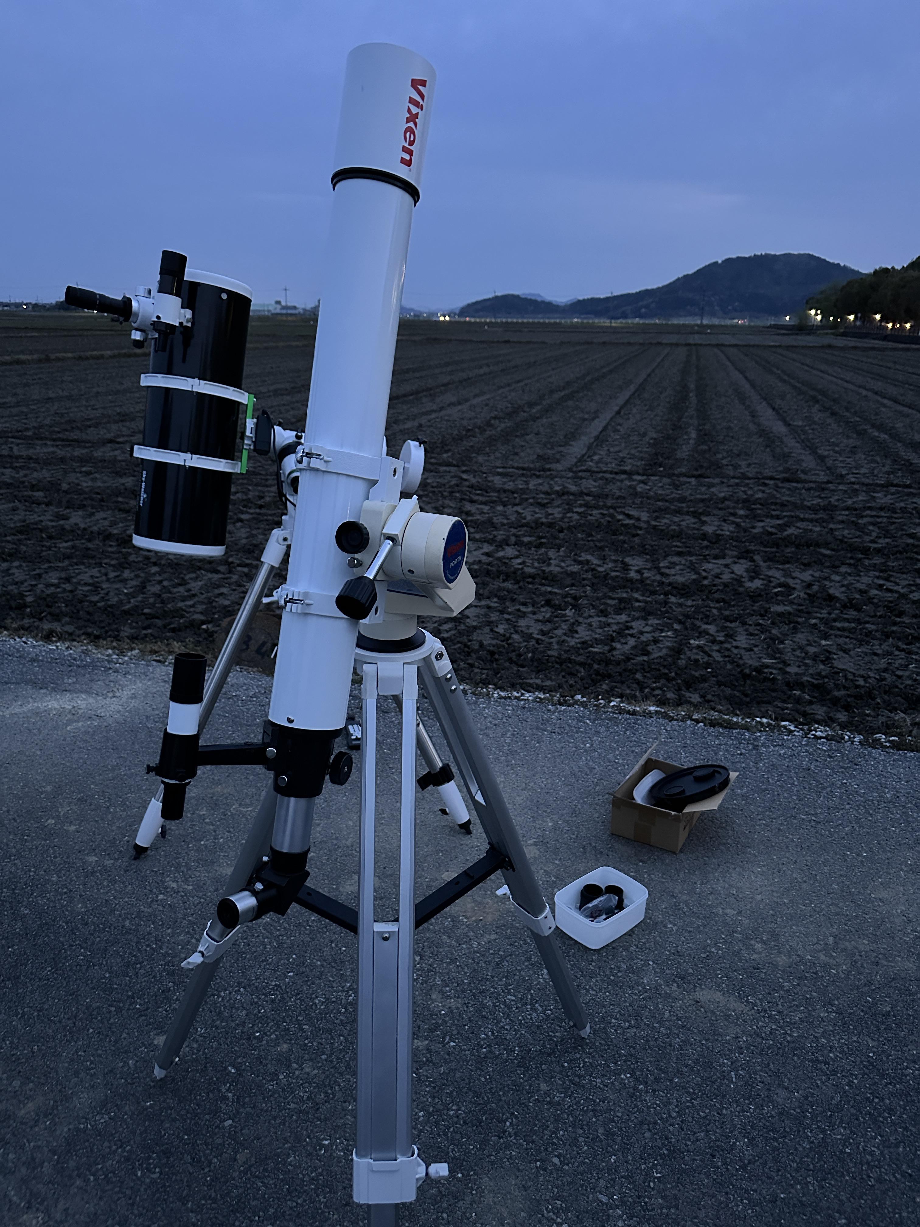 학교 바로 옆에 이런 논이 있는데 어두워지면 여기에 망원경을 설치한다.
