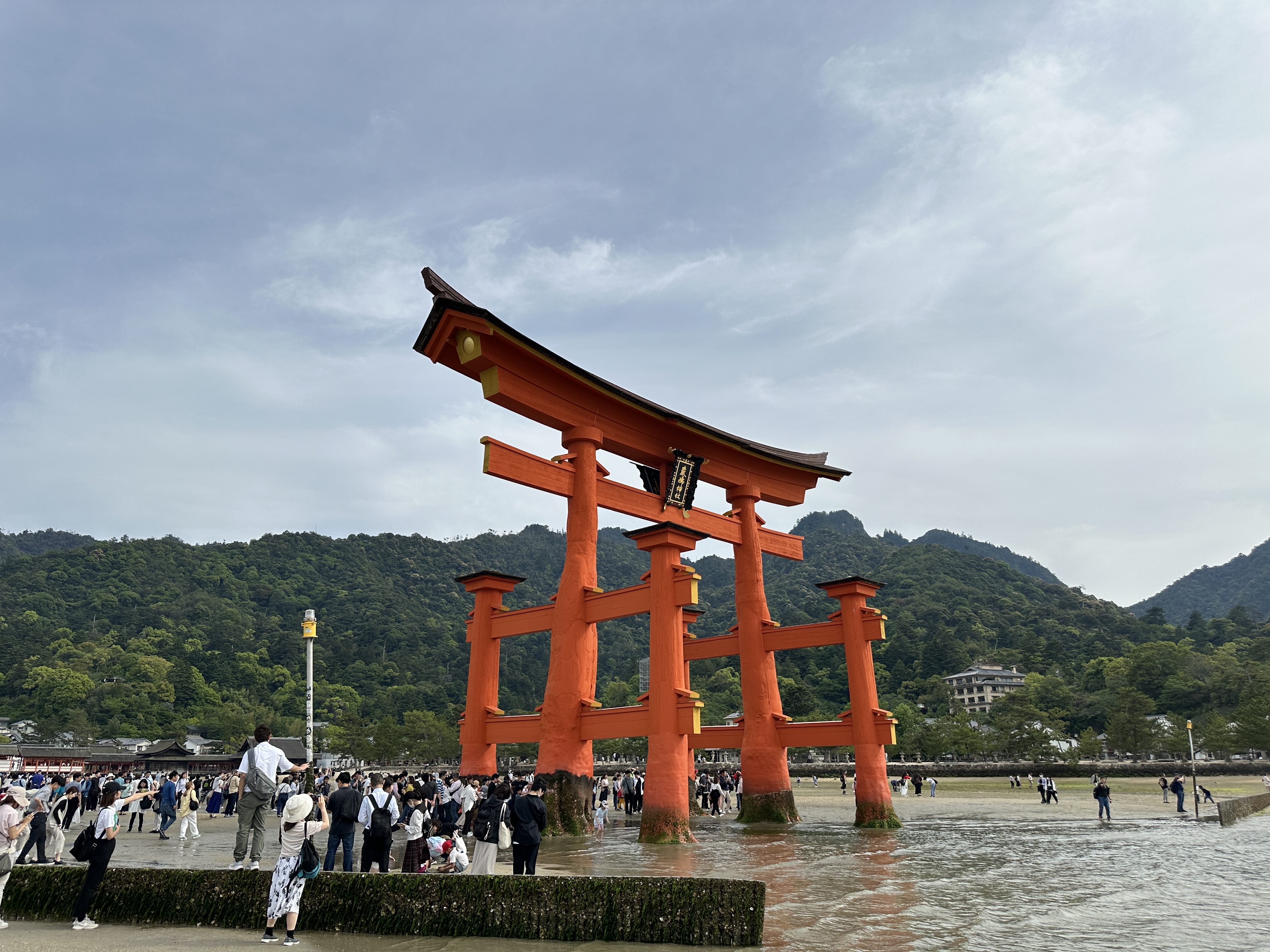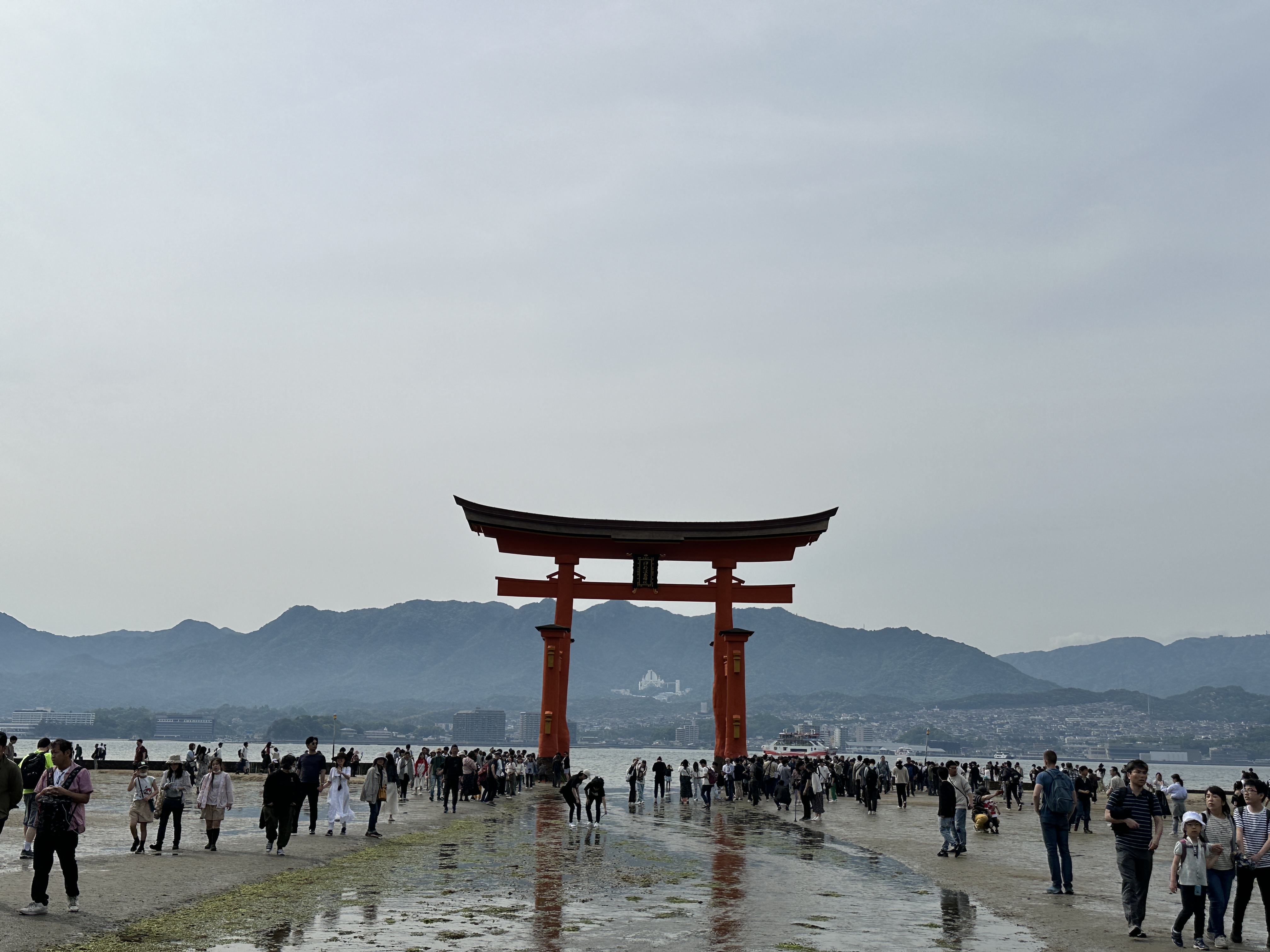 시간이 지나 간조(썰물) 때가 되자 바닷물이 빠지면서 토리이까지 걸어갈 수 있게 되었다.