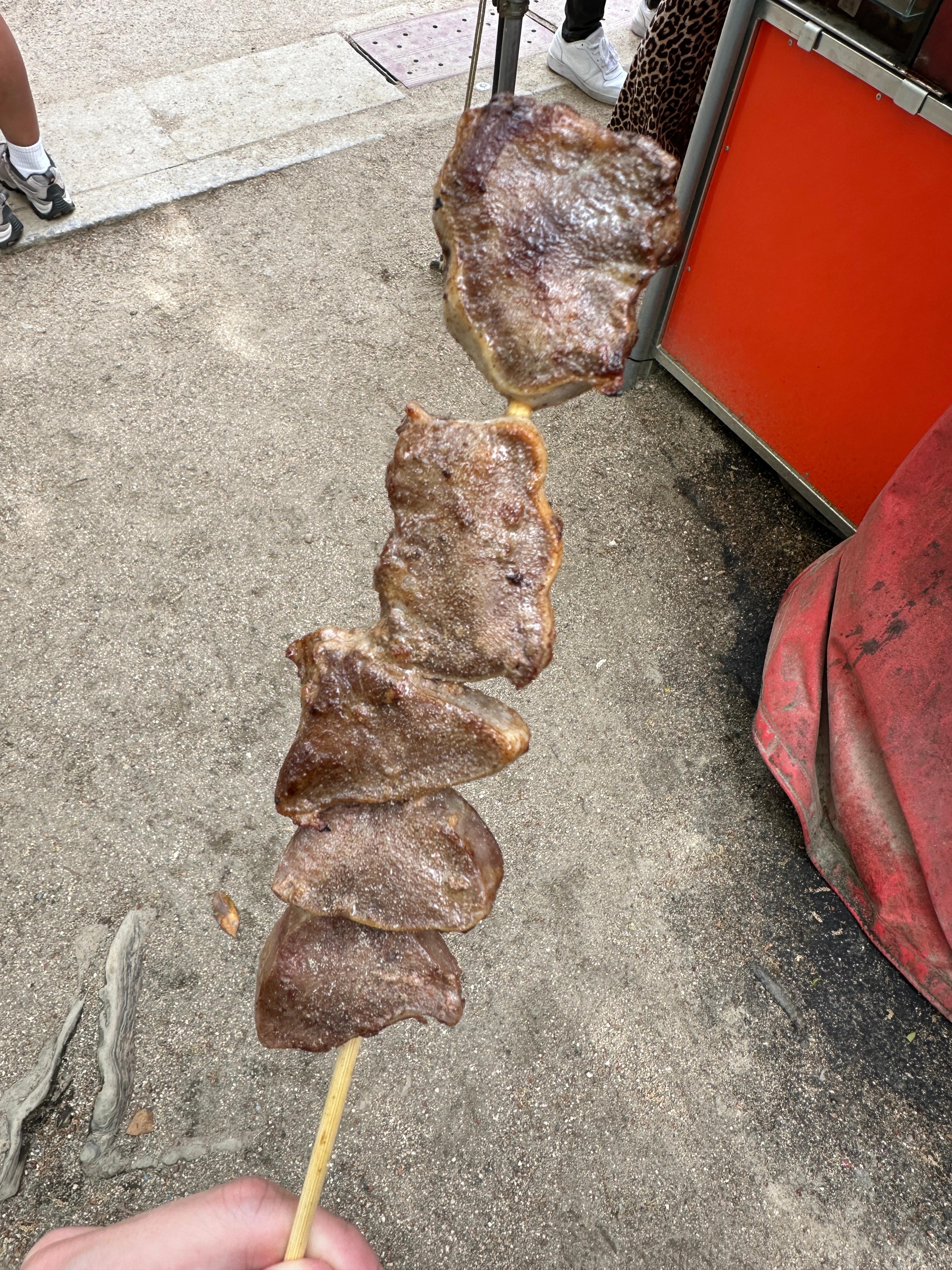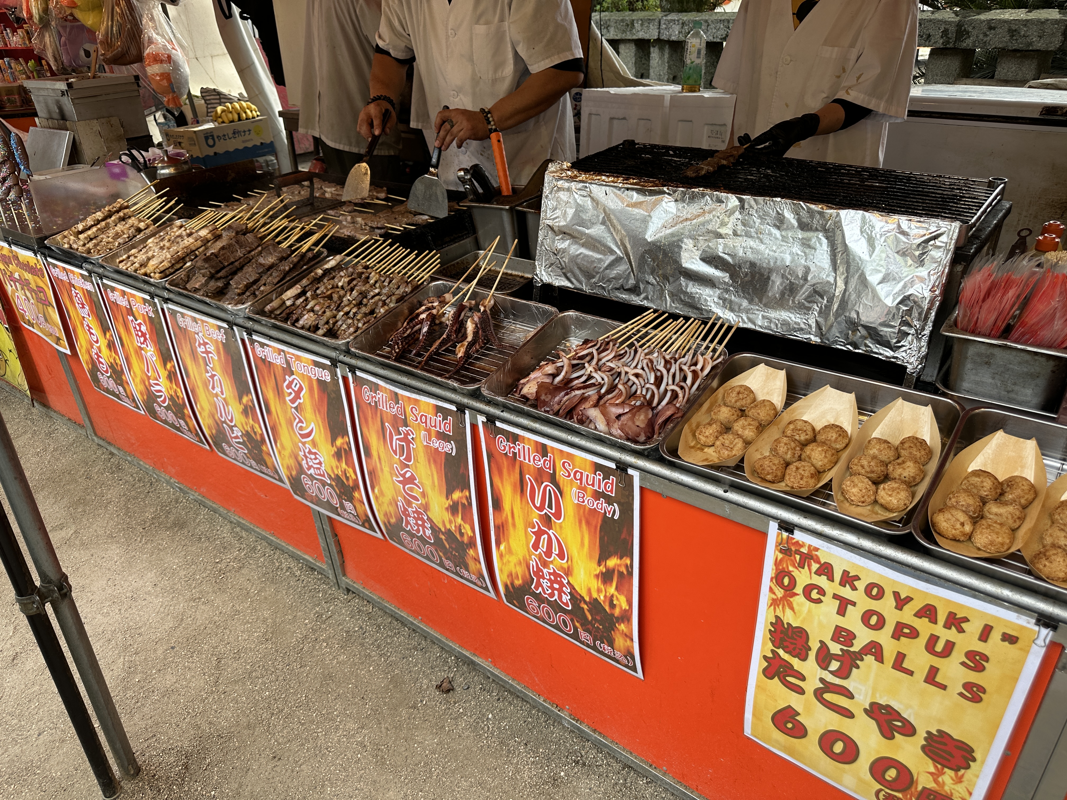 토리이를 보고 슬슬 돌아가려는데 이 꼬치들의 냄새가 장난이 아니었다.