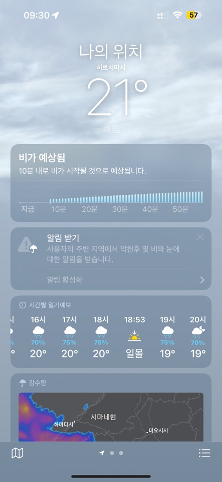시가에서 히로시마까지 왔는데 진짜 뭔 우천취소여..