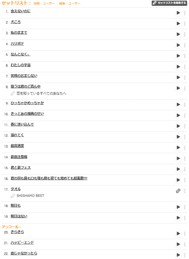 내가 갔던 SHISHAMO 라이브는 아래와 같다.