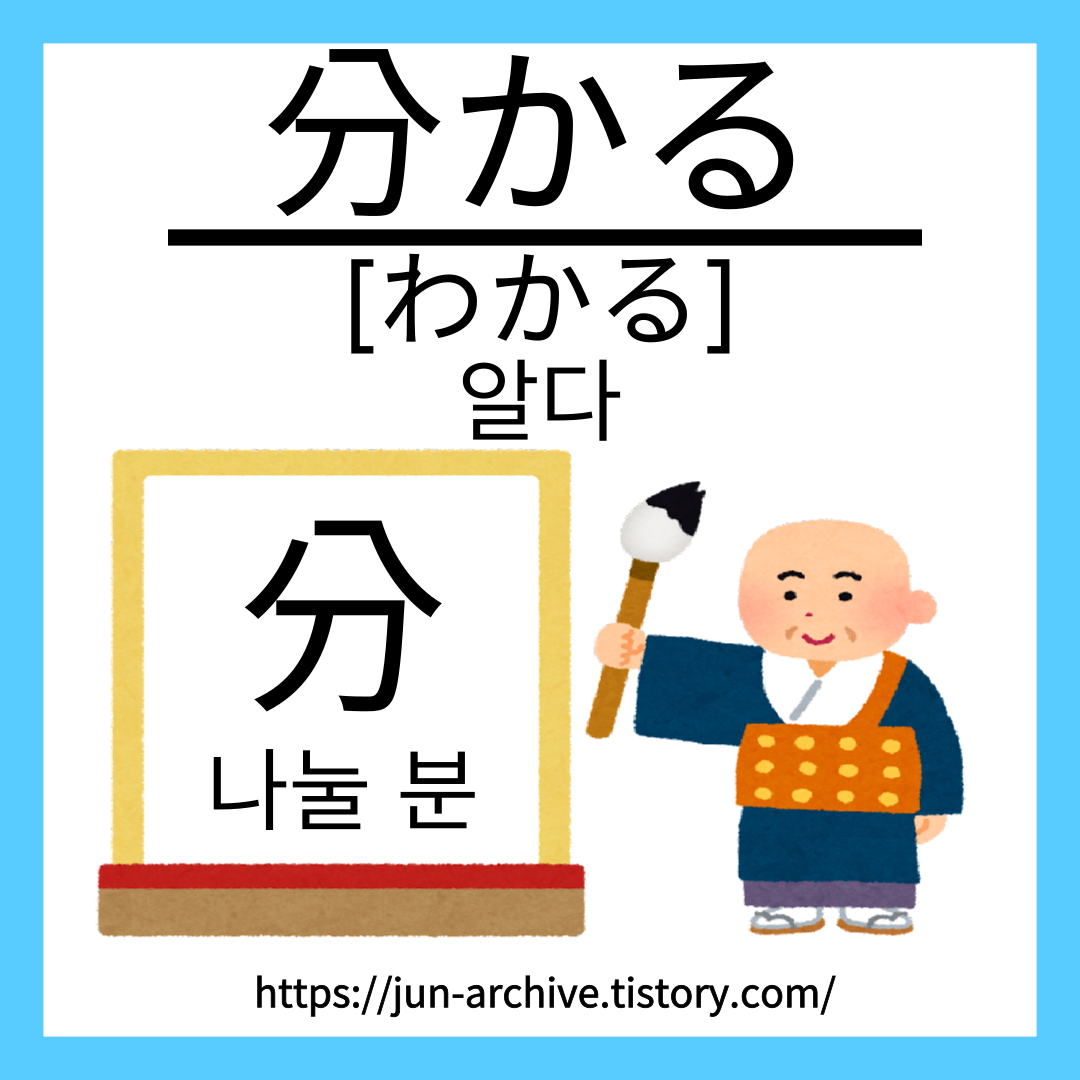 「分」은 “나눌 분”이라는 한자이고, 「分かる」도 “알다”라는 의미의 일본어 단어입니다.