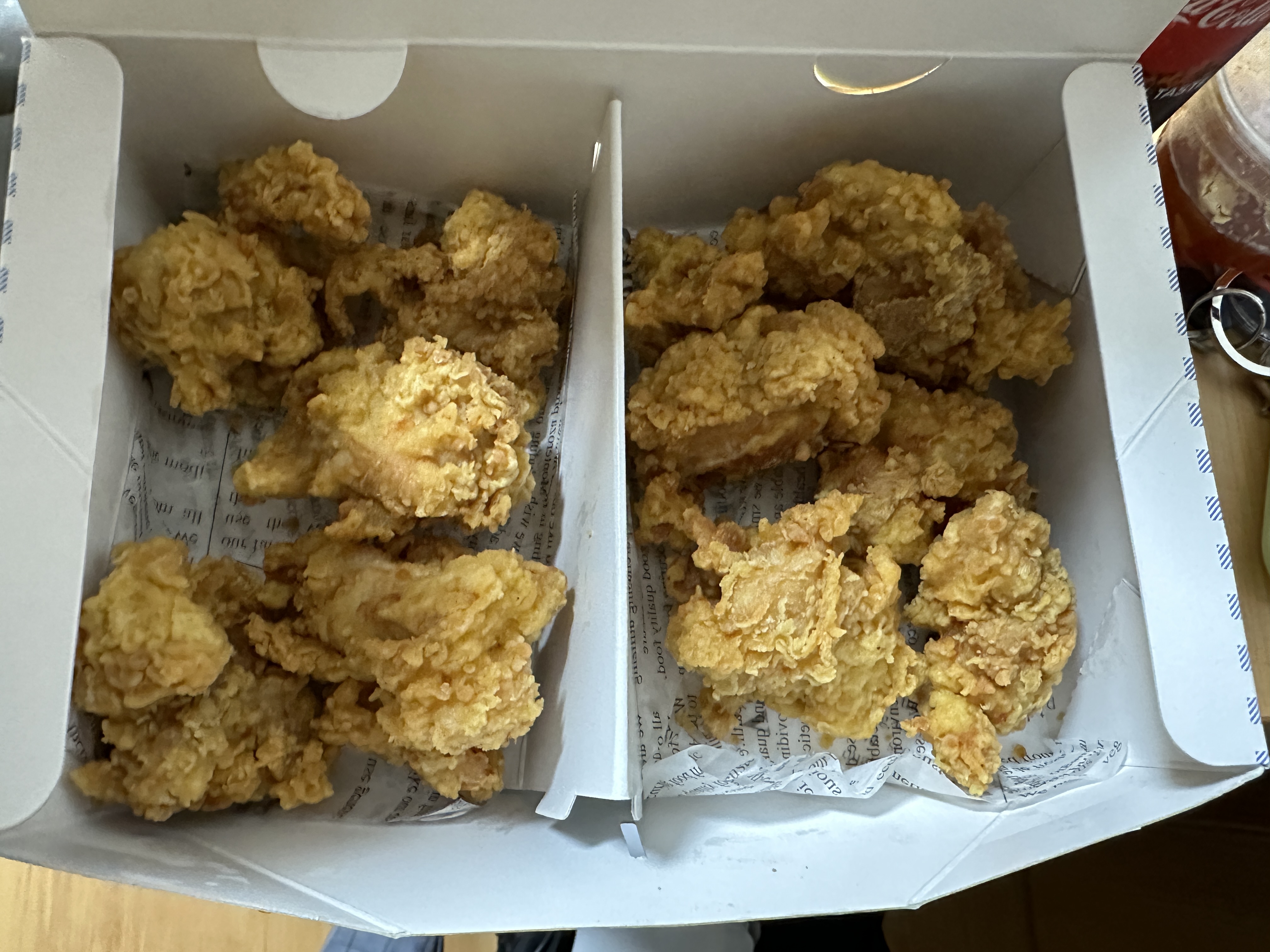 그래서 한국인 교환학생 다 같이 한국 치킨을 먹으러 갔었다.